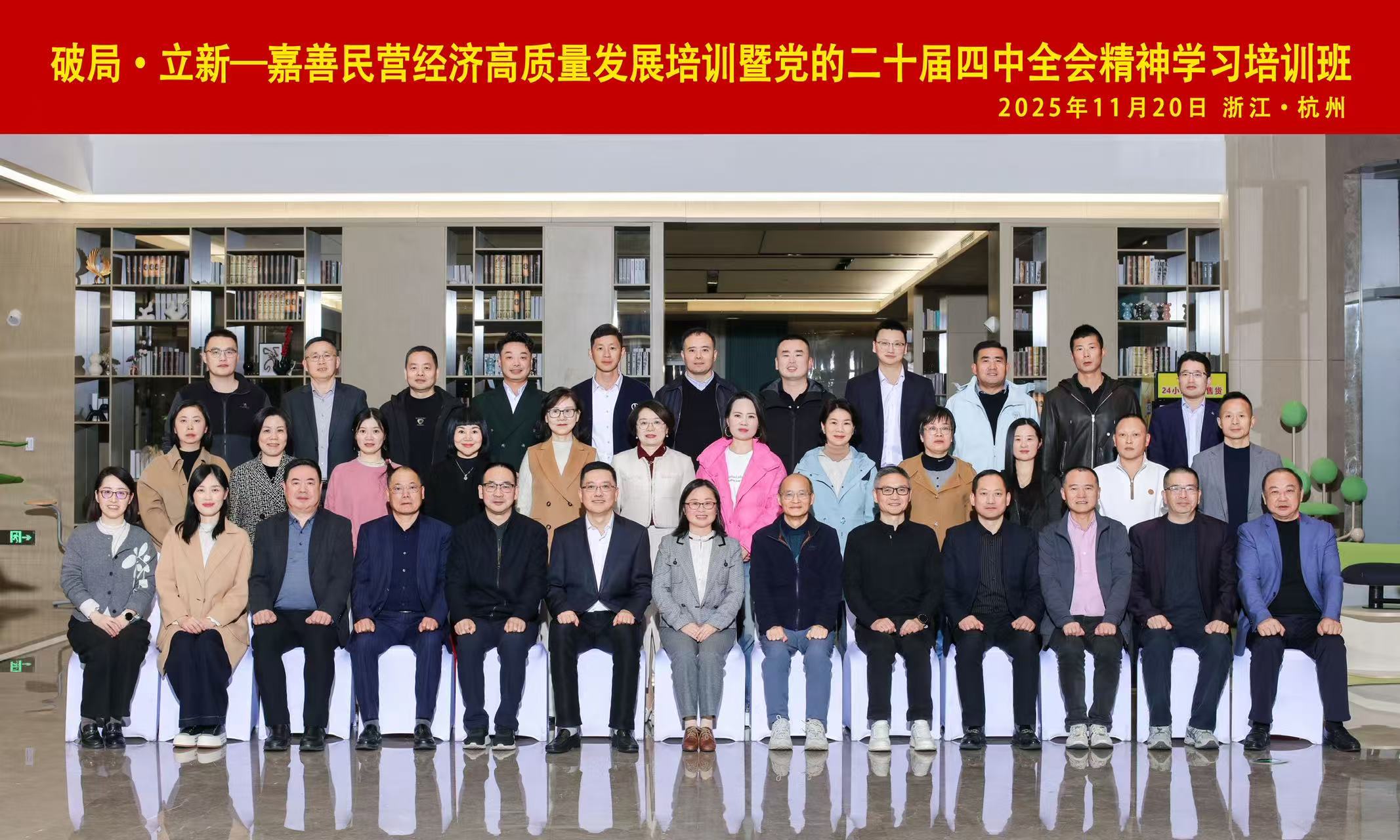 2025年11月20日至22日,“破局·立新——嘉善民营经济高质量发展培训暨党的二十届四中全会精神学习培训班”在浙江财经大学杭州培训基地(鼎文国际)顺利举行。本次培训由嘉善县工商联组织,共有来自全县各行业的企业家代表及商协会负责人等30余人参加。