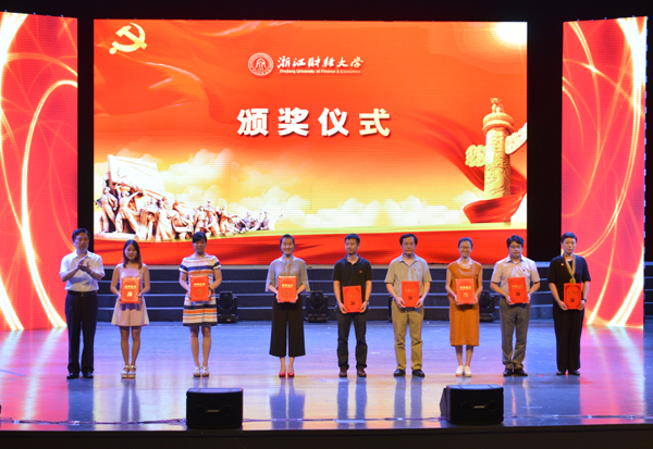 校纪委书记陈金方为微型党课大赛获奖者代表颁奖
