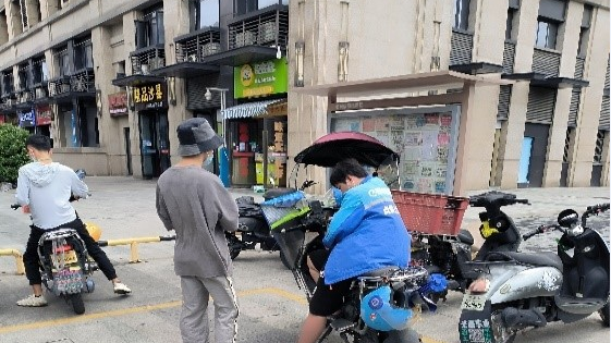 7月3号,团队前往杭州市钱塘区及上城区进行问卷发放,通过寻访街边等餐、休息的骑手进行调研问卷的发放并与之交谈。在交谈过程中,我们了解到大部分骑手在日常的工作中均面临较大的压力,在平台规定的送餐时间之内,商家出餐慢成为阻碍骑手准时送餐的最大障碍,不仅如此,部分骑手还面临来自商家和顾客的恶劣态度。
