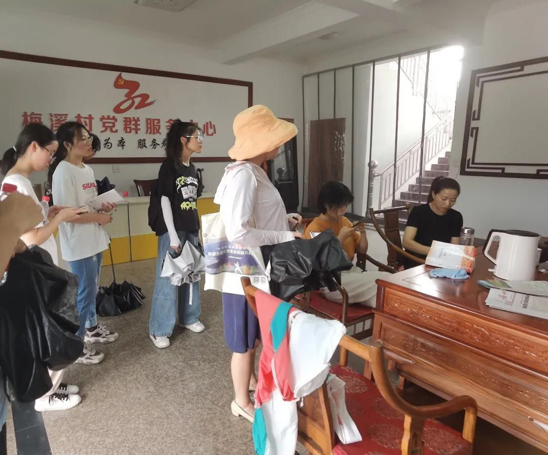 梅溪村位于淡溪镇四都社区, 是淡溪的旅游核心区,也是南宋状元王十朋的故乡。通过实地调研梅溪村的悠久历史和淳朴乡风,整合利用王十朋的状元精神和文化内涵,团队成员致力于在深度挖掘梅溪村历史价值基础上,全面提升村庄环境以及合理规划梅溪村特色旅游路线。团队先后走访了梅溪村村委会、养老中心等相关场所,与村干部进行了深入的交流。团队成员得知,梅溪书院等十个旅游景点将采用国际先进设计技术,投资3200万元,结合文化与科技进行建设。