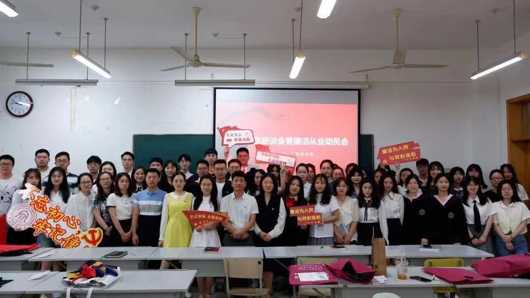 毕业生党员座谈会暨廉洁从业动员会在学院楼104举行。学院党委副书记程晓东,学办主任周衍彤、团委书记边华菁、辅导员黎超等老师出席,全体毕业生党员参与座谈。会上,程晓东副书记传达学习上级精神,全体与会人员共同观看党史教育主题短片《画说党史》,再次回顾党的百年历史。
