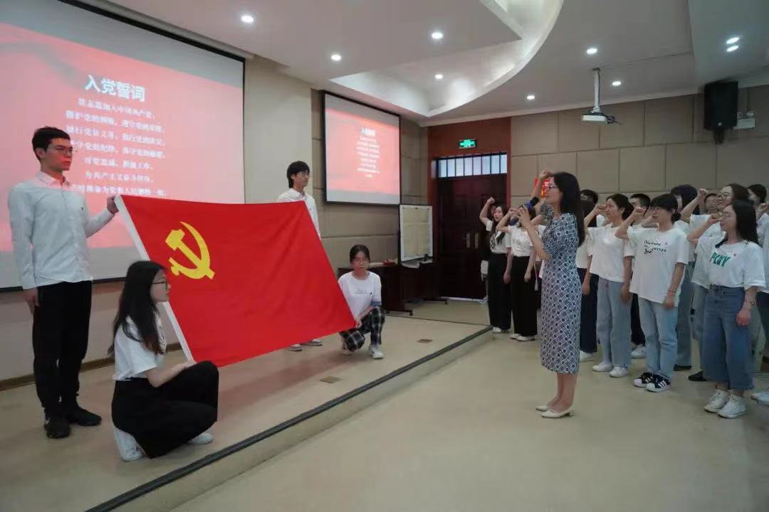 活动在庄严的入党宣誓中拉开帷幕,全体新发展党员面向党旗,高举右手,庄严宣誓,表达了当代大学生牢记初心使命,不断增强党员意识和担当的决心。