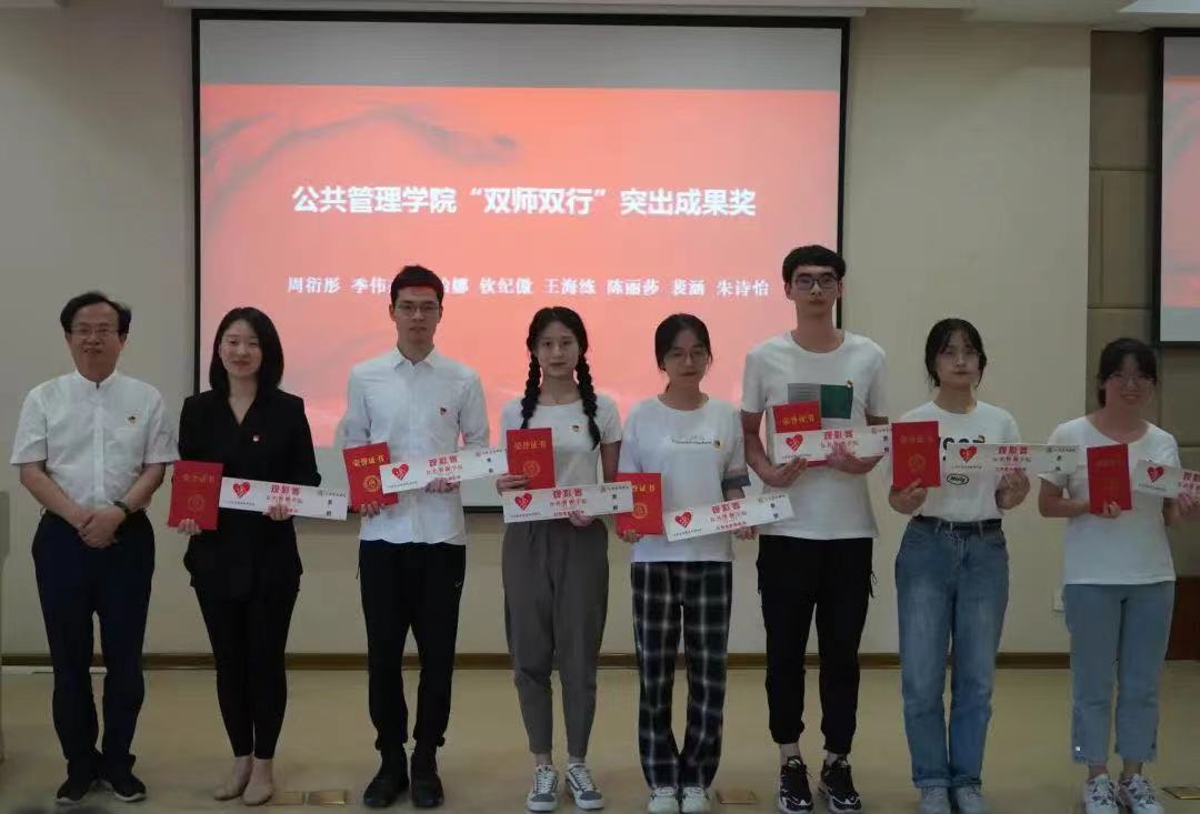 宣誓结束后,学院对近一年来涌现出的学生优秀党员进行了表彰。校党委副书记黄建新为在全国“挑战杯”红色专项赛中勇夺全国一等奖的团队颁奖。学院领导班子分别为获得“双师双行”实践服务之星、七号室友朋辈之星、考研之星和学术之星等荣誉称号的同学颁奖。
