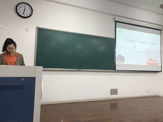17社保党支部吴思钰为19级新生上了一堂别开生面的“不忘初心,牢记使命”的主题教育课。习近平总书记在十九大报告中指出这一指导将在各个方面指导我们的工作学习,对我们锤炼忠诚干净担当的政治品格具有指导性意义。吴思钰从如下五个目标向我们抽丝剥茧式地介绍了其核心内容:理论学习有收获、思想政治受洗礼、干事创业敢担当、为民服务解难题 、 清正廉洁作表率。每一条自成框架,最后又紧密为一,使同学们细致地了解什么是“不忘初心,牢记使命”,也明白了接下去该如何践行这一目标,真正做到初衷勿忘,脚踏实地。
