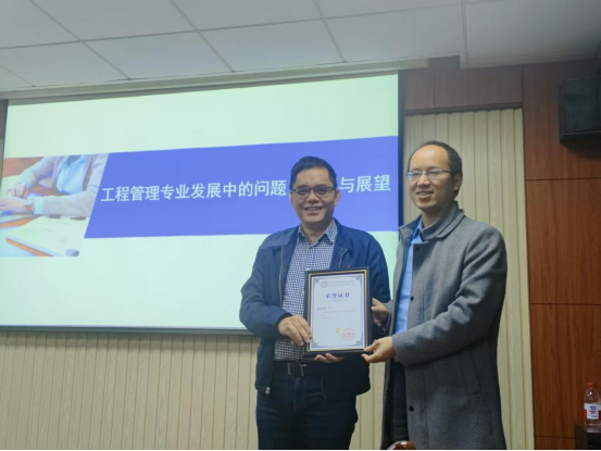 刘炳胜校长作题为《工程管理专业发展中的问题、对策与展望》的报告。他先介绍了其丰富的跨学科求学与研究经历,再对工程管理专业的发展历史和特征、理论实践平衡等问题以及未来发展趋势进行了深度剖析。刘校长认为工程管理专业拥有深厚的历史积淀和持久的生命力,面对智能革命冲击和行业深度调整,工程管理学者应该危中窥机,夯实理论厚度、积蓄发展动力。工程管理专业应突破传统工程项目的局限,向上与城市巨复杂系统、国家重大工程相结合,向下应深入研究组织行为、人机协作,同时还应横向与公共政策、信息科技、智能装备等领域进行融合。刘校长以多个国家重大工程项目为例,生动地阐述了“从工程实践中凝练科学问题,通过理论构建形成政策洞见,最终反哺教学与人才培养”的完整学术价值链,并对我校工程管理专业在服务国家需求和响应时代号召方面提出了期望。