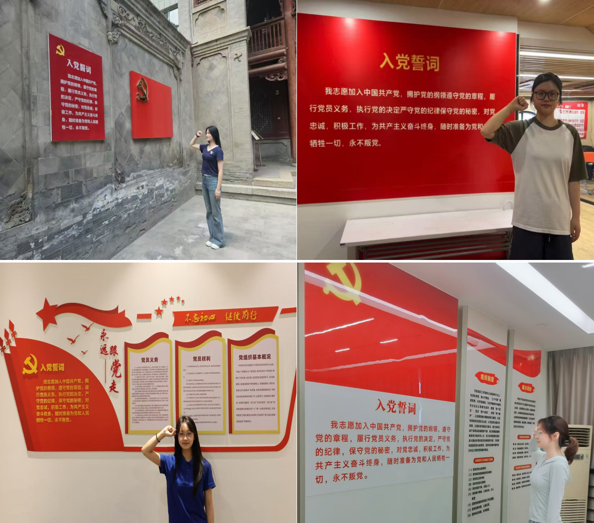 学院党委组织今年新发展的党员和预备党员在各自家乡的革命遗址、红色教育基地或党旗下庄严宣誓。通过“云端连线”方式,来自全国各地的党员同步完成宣誓仪式,用铿锵誓言表达对党的忠诚与为共产主义事业奋斗终生的决心。这一特殊形式既体现了组织程序的严肃性,也让党员在红色文化浸润中接受精神洗礼。