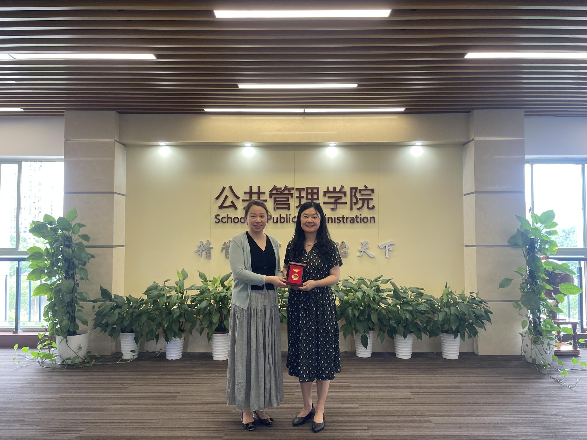 学院党委书记林亚芳为党龄满20周年的教师党员唐瑶老师颁发特制纪念徽章,以此表彰长期坚守教育初心、为党育人的忠诚与奉献,既体现了党组织的崇高敬意,也承载着学院对党员教师的殷切期望。唐瑶老师表示:“这既是荣誉更是责任,我们将继续做好‘传帮带’,为培养更多优秀人才贡献力量。”