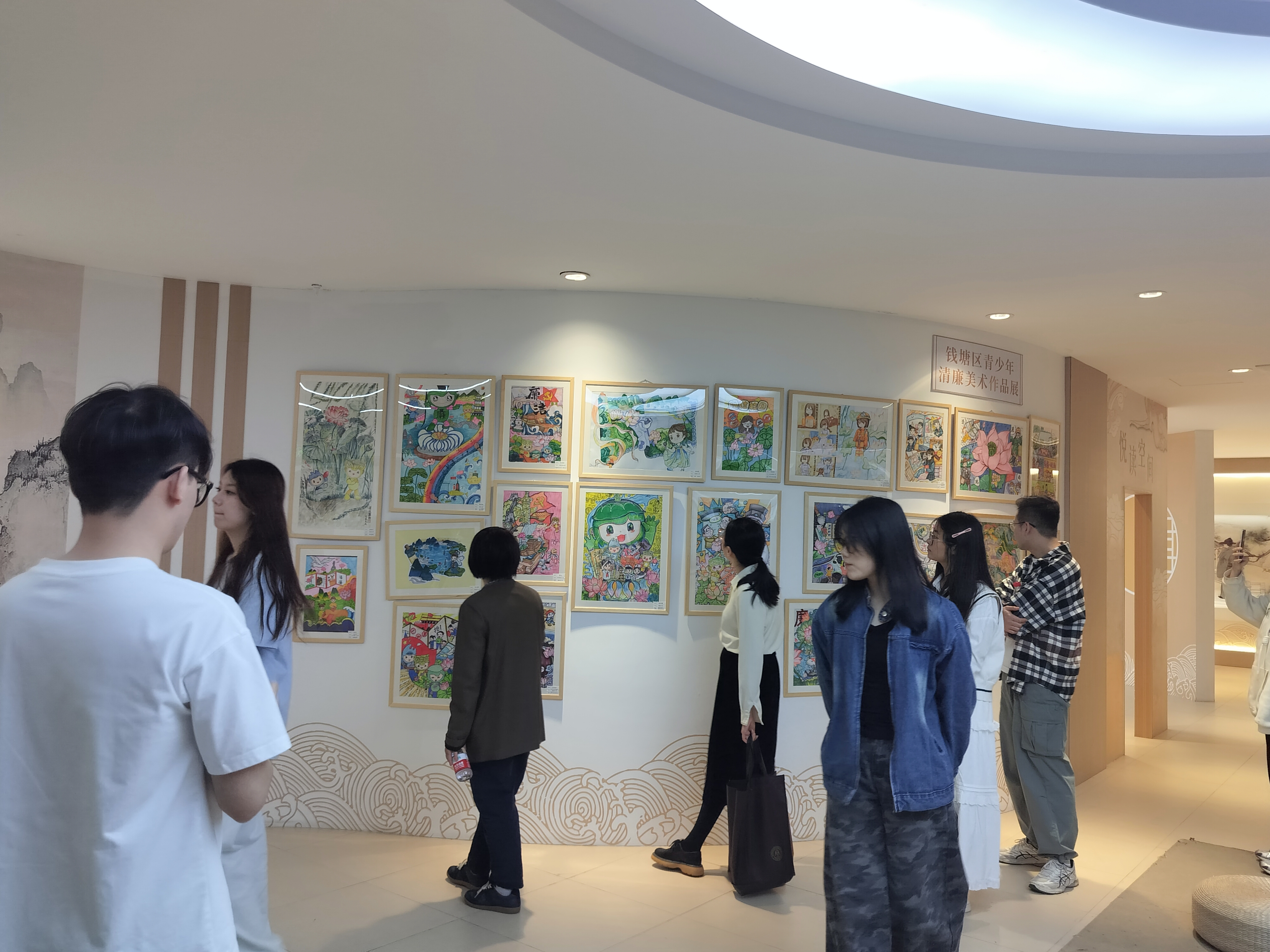 移步互动体验区,师生参观了钱塘江青少年以绘画、手工物品等形式呈现的“廉洁家风”作品,孩子们天马行空的创意与纯真质朴的表达,让师生们直观领略到“幼启廉风”的深远意义,也看到了廉洁文化传承的蓬勃希望。