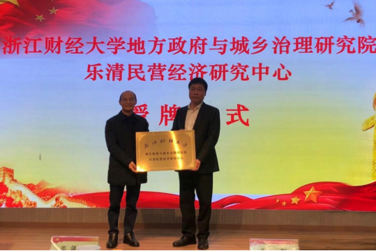 双方负责人签订了战略合作协议,共同为浙江财经大学地方政府与城乡治理研究院乐清民营经济研究中心揭牌。