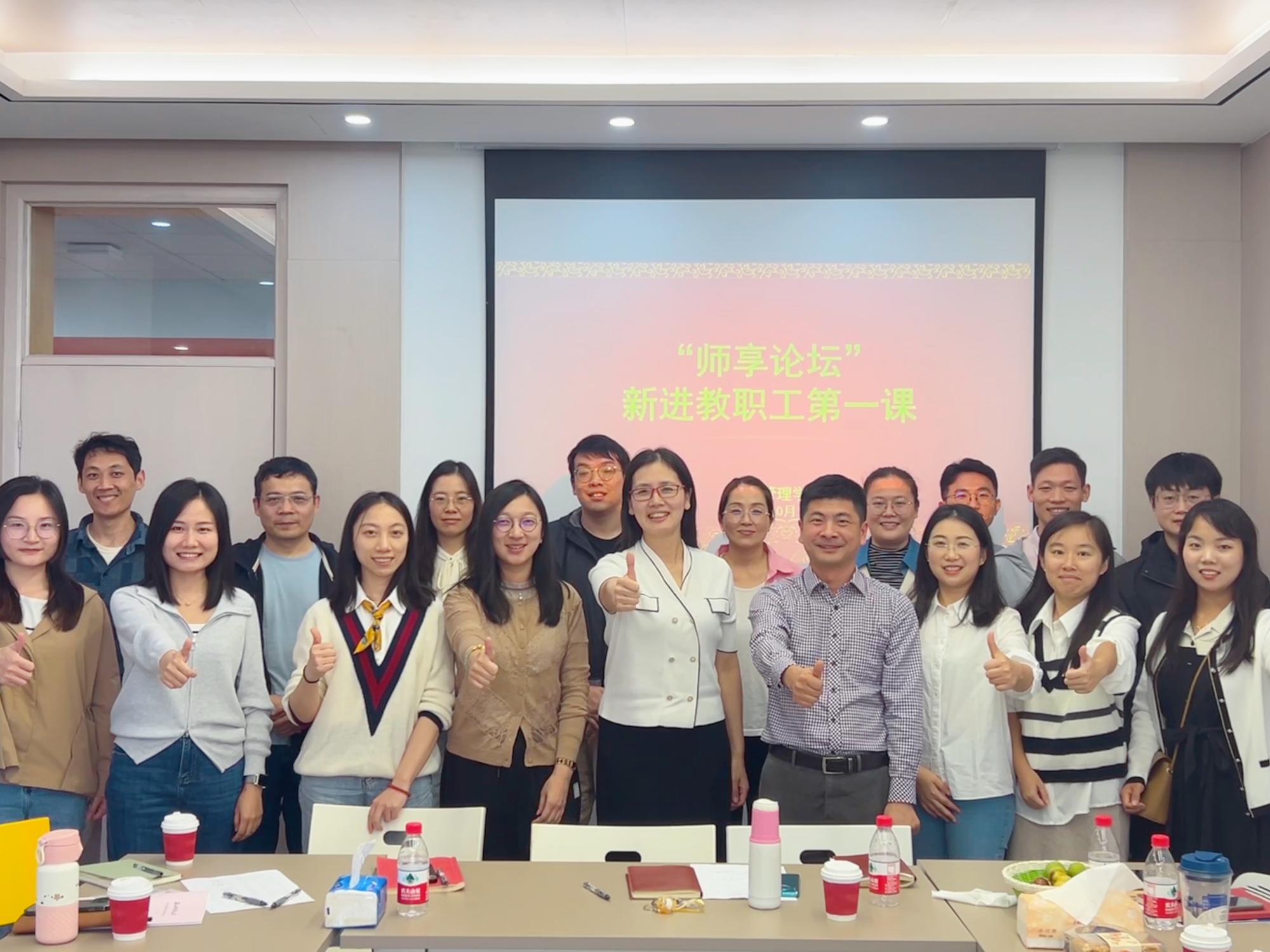10月10日,学院开展“师享论坛”新进教职工入职第一课,学院党委书记沈晓敏、副书记程晓东、青年教师代表及13位新入职教职工参加。