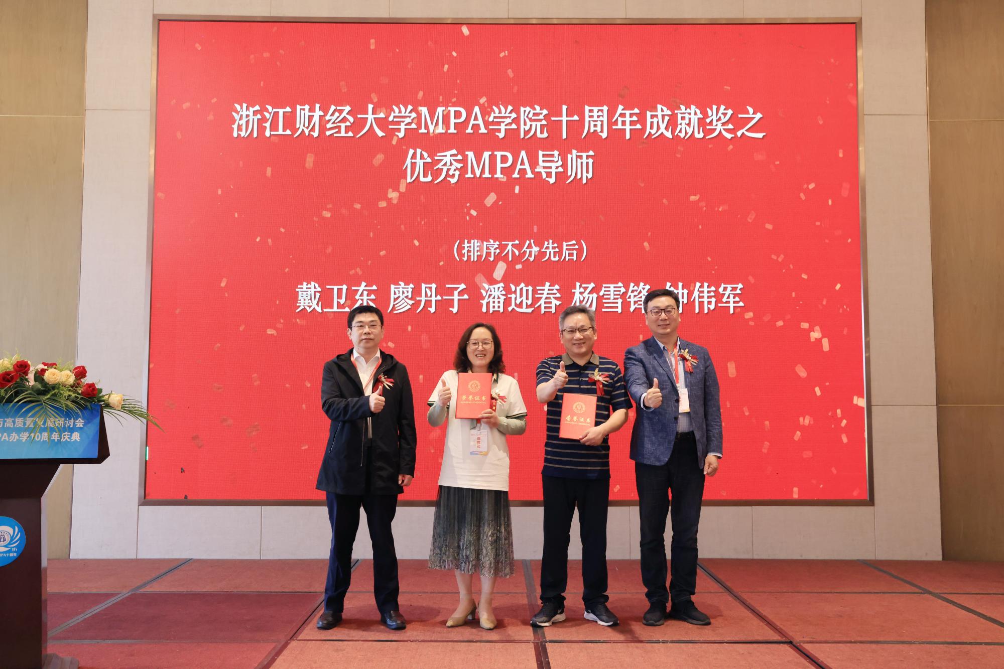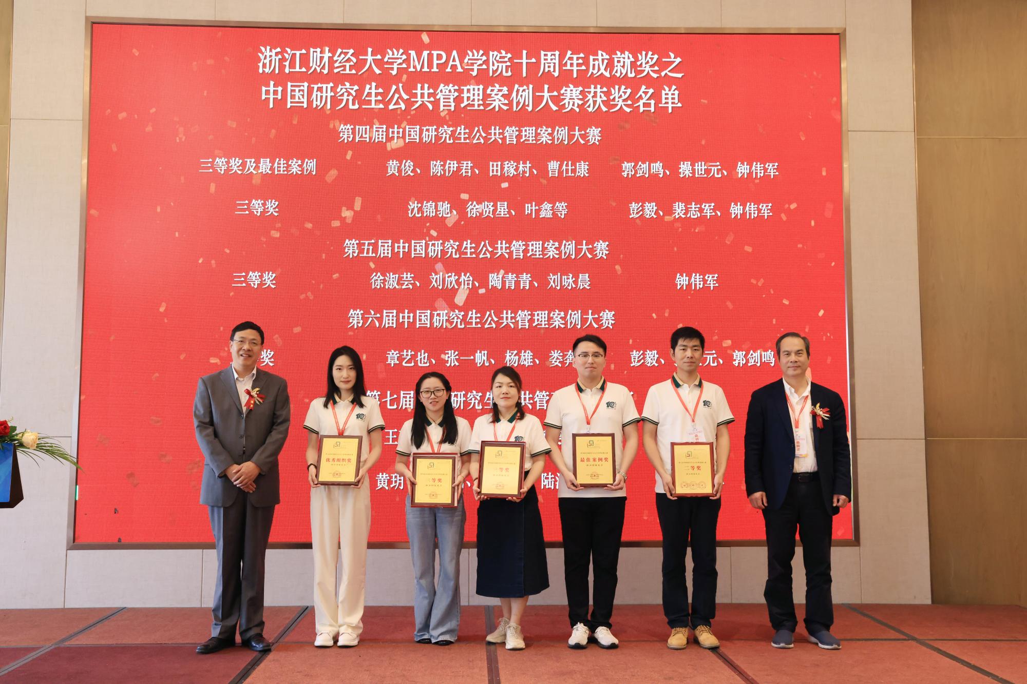 随后,举行了MPA办学十周年成就奖颁奖仪式。与会领导嘉宾为MPA优秀校友和导师、历届全国公共管理案例大赛获奖者代表颁发奖状及证书。