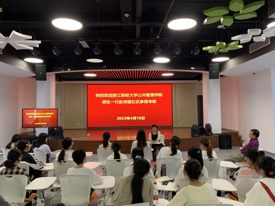 学子对社区治理有更进一步的认识,4月18日,学院部分师生在杨雪锋教授带领下赴钱塘区白杨街道邻里社区参观学习,受到社区党支部书记张敏华的热情接待。