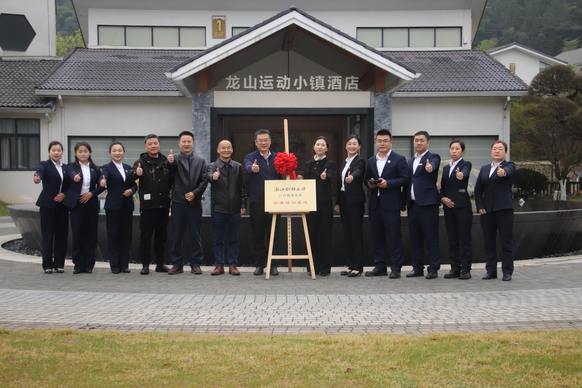 在龙游县广和雷迪森怿曼龙山运动小镇建立浙南培训实践教育基地。校党委委员、副校长徐晓东、院长郭剑鸣等人出席签约仪式。