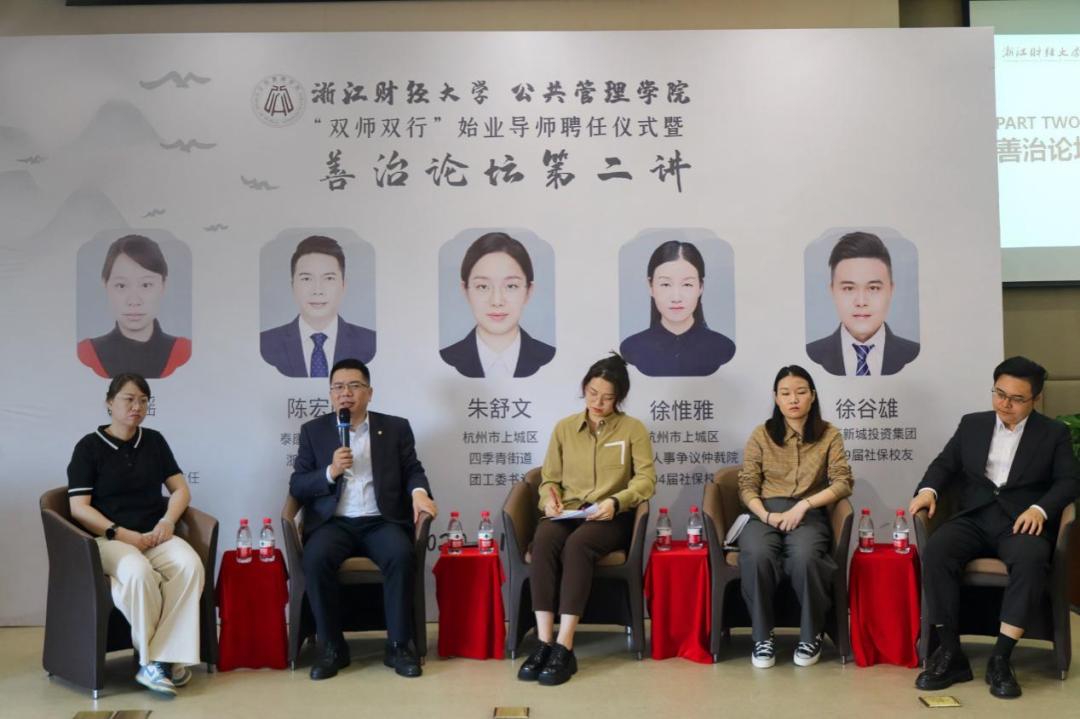 “双师双行”始业导师聘任仪式暨“善治论坛”第二讲活动在学院楼208报告厅举行。本次活动由劳动与社会保障系承办,2022级公共管理类学生参加。