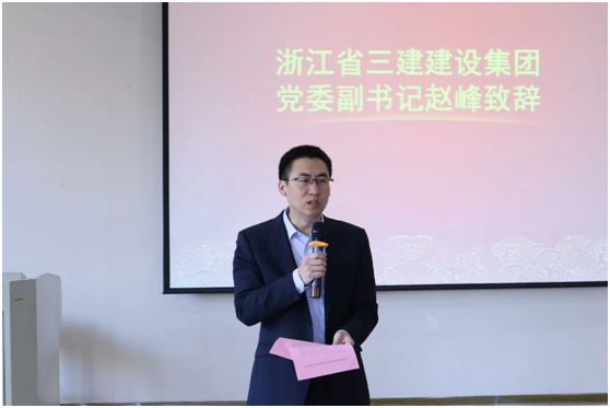 赵峰在致辞中介绍了浙江省三建建设集团有限公司基本情况,向现场师生解读了国企招聘相关政策,希望以此次战略合作签约为契机,全面加强院企双方在党建共建、实习就业等方面的深度合作,促进双方事业发展,实现交流合作常态化。