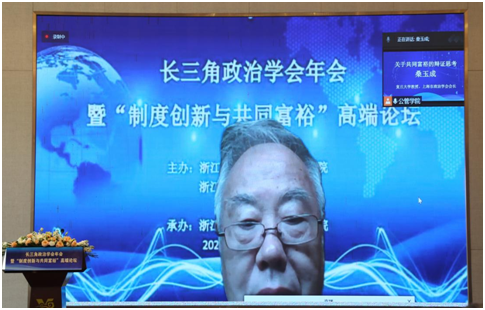 桑玉成教授作了题为“关于共同富裕的辩证思考”的主旨报告。他认为,共同富裕是我们发展的方向,是一种价值取向,要正确认识共同富裕的原则、内涵和要求。继而从观念上、政策上和地域上对共同富裕的内涵、要求以及如何实现共同富裕提出对策与建议。
