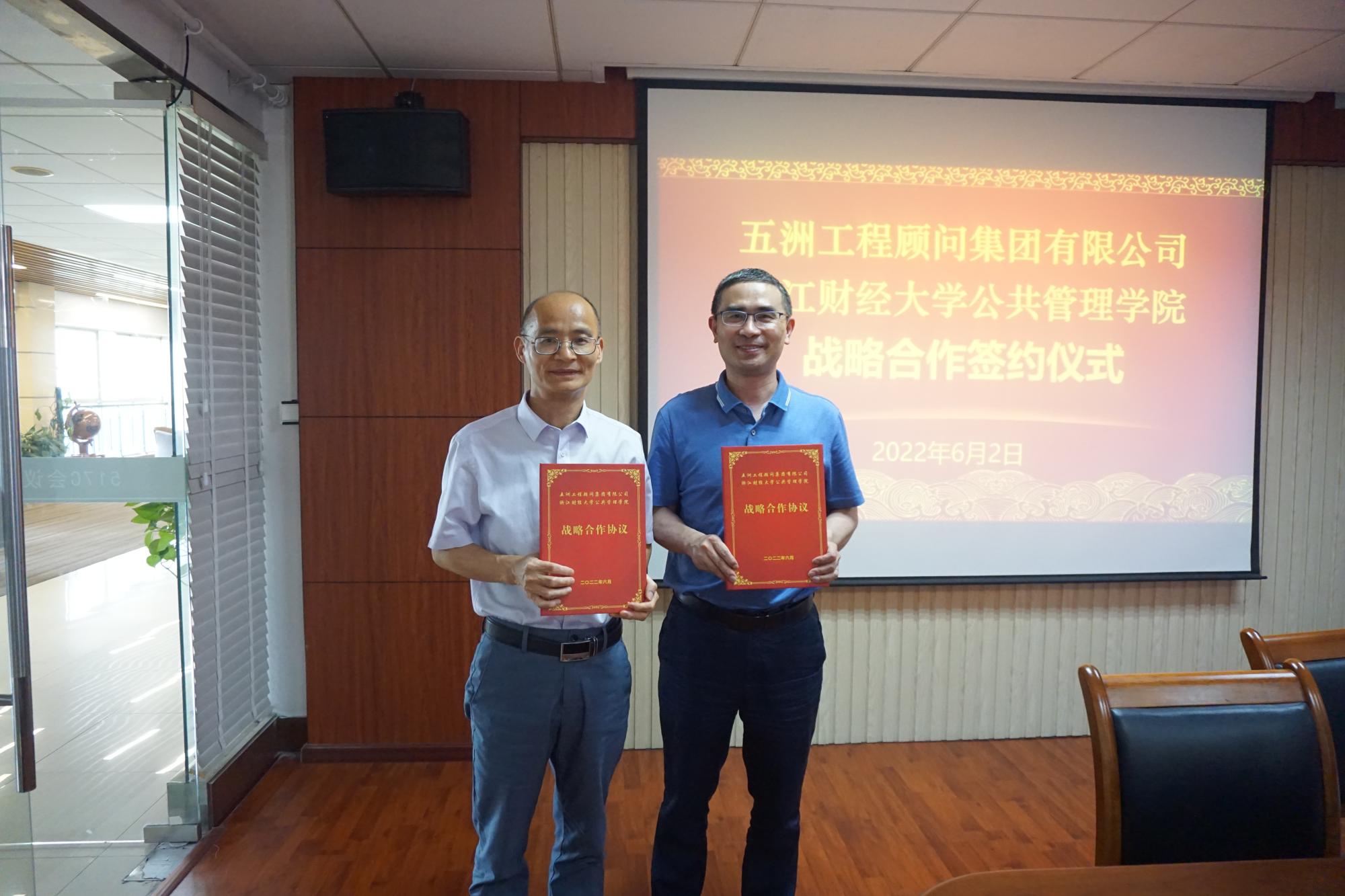 6月2日,五洲工程顾问集团有限公司人力资源中心副总经理吴芳梁,项目管理中心副总经理沈磊,人力资源中心招聘经理、2006届工程管理专业校友胡盼婷等一行来院参加战略合作签约仪式。郭剑鸣代表学院对五洲工程一行的到来表示热烈欢迎,他介绍了学院情况和近期发展,希望以此次签约为契机产生更多合作成果。吴芳梁、沈磊对学院的热情接待表示感谢,并介绍了公司概况和人才需求等情况,表达通过战略合作实现人才培养、共赢发展等意愿和举措。