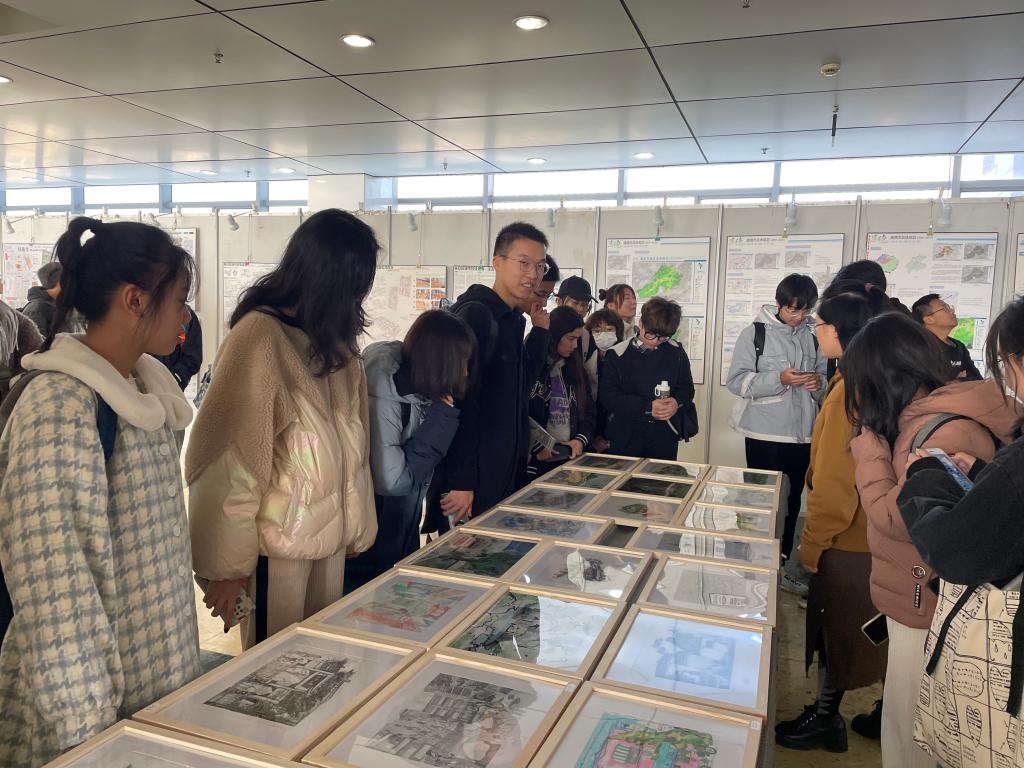 本次展览分为四大区域,共布置展板70余块。作品种类繁多,有专业课程作品、学科竞赛作品、专利成果作品、集中实践优秀作品等。在作品展览期间,前来参观的师生络绎不绝,同学们相互交流学习,展览好评如潮,增进了师生对城乡规划专业的认识了解。