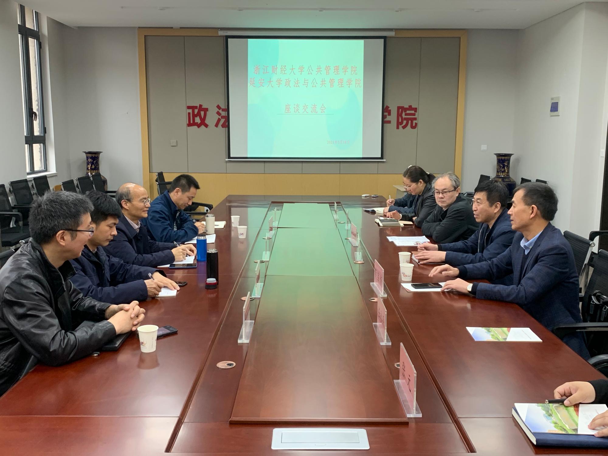 冯志宏院长等领导介绍了学院起源、师资队伍、一流专业建设、学生考研等方面的经验做法。双方围绕相关话题进行了热烈的讨论,并就深入推进社会合作等事项进行了交流。调研组一行还参观了延安新校区和红色学习基地建设,听取了延安大学的建设汇报。