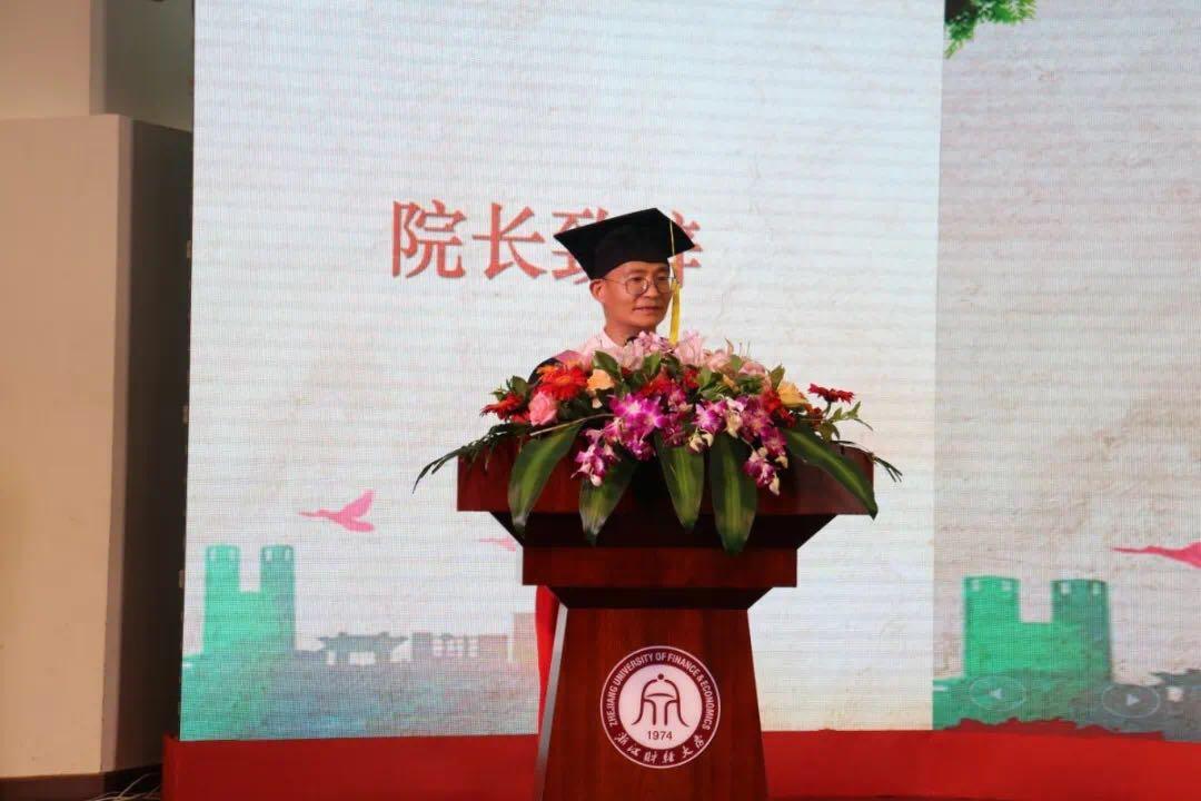 毕业生代表、16社保班龚菲娜在发言中向辛勤培育公管学子的学院老师们表达感谢,她回顾了四年求学生涯的点滴成长,祝愿每一位毕业生都能奋发有为、顶峰相见,祝愿母院桃李芬芳。