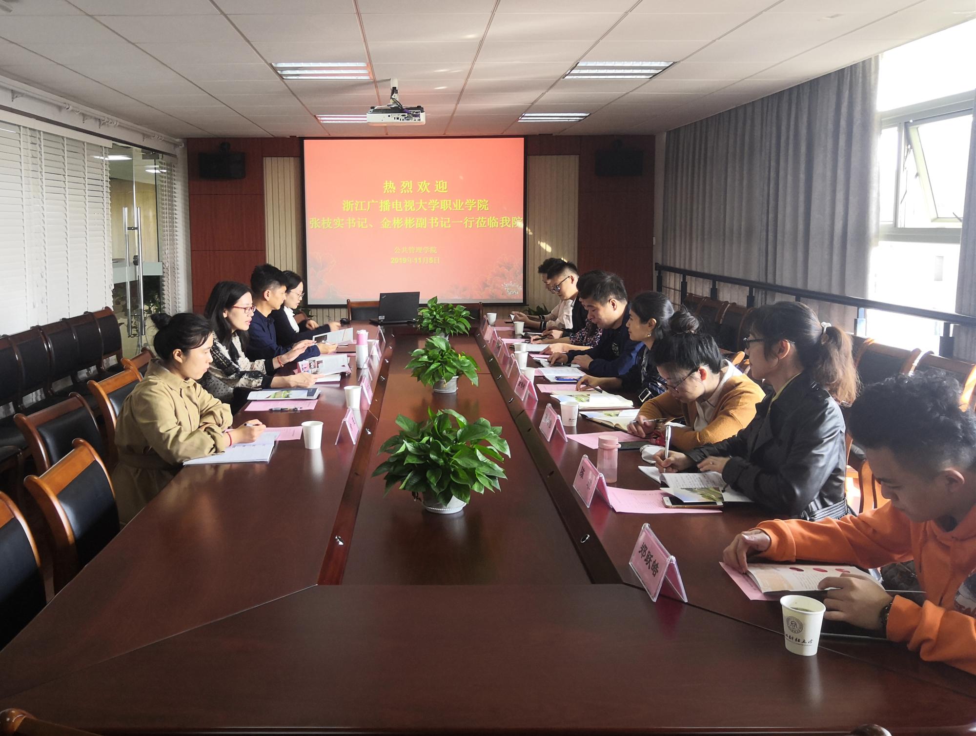 11月5日,浙江广播电视大学直属学院党总支书记张枝实、副书记金彬彬及其他老师一行8人,专程赴CBA在线直播