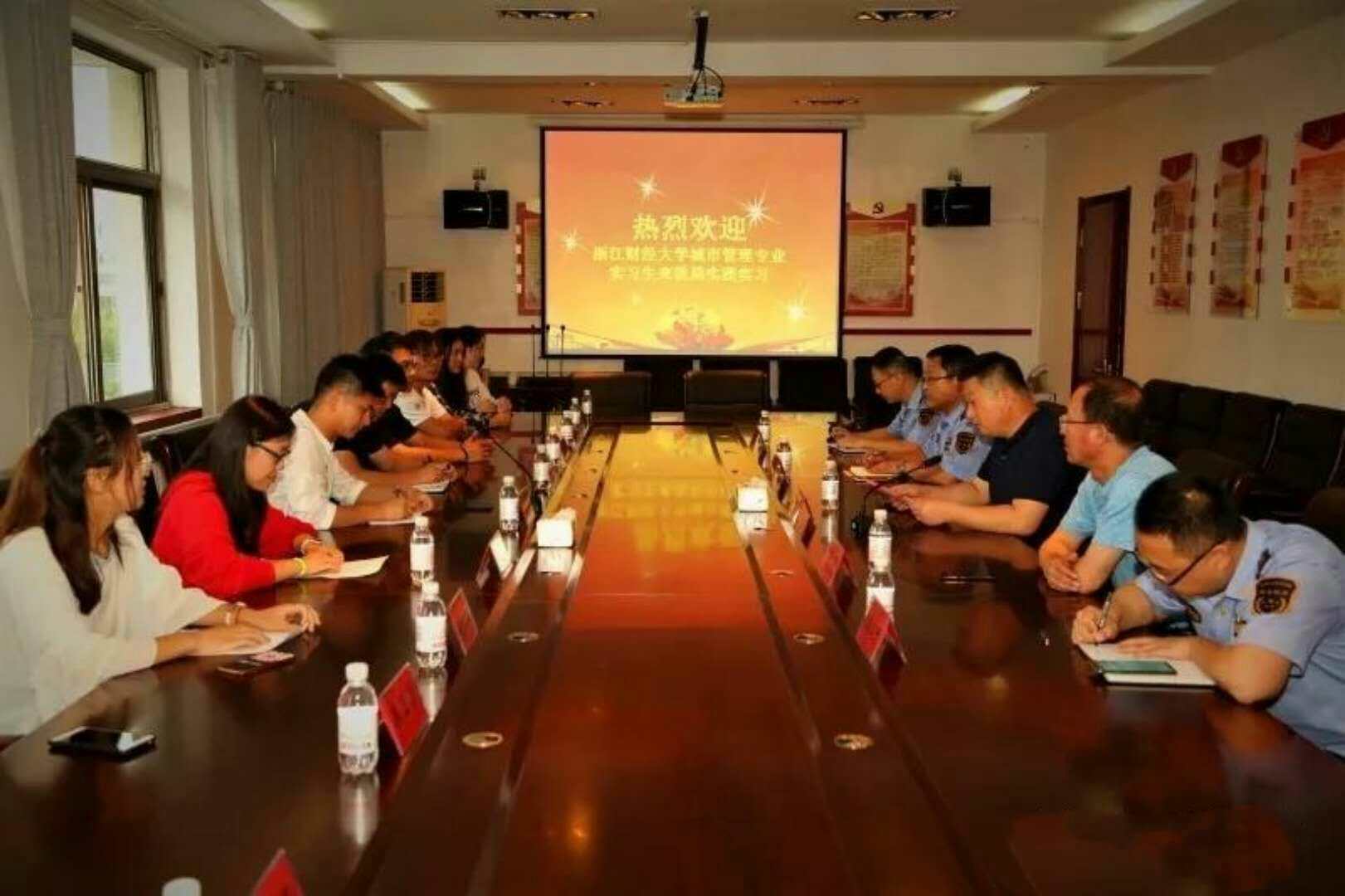 举办了欢迎会,胶州市综合行政执法局局长李建勋、副局长牟秀平、学院党委副书记程晓东、学院社会合作办负责人章滨、以及带队导师王笑言等相关人士参加了此次欢迎仪式。