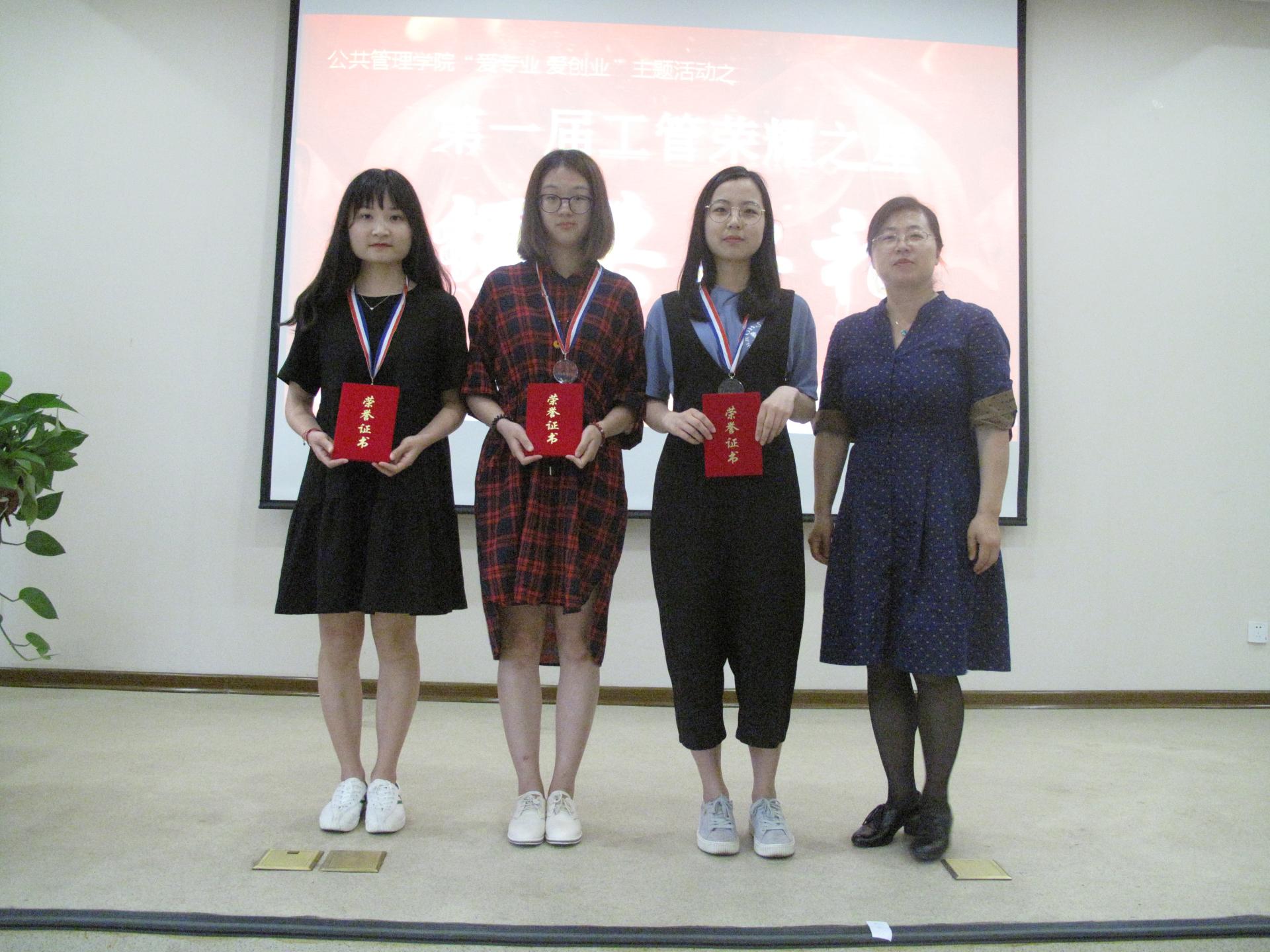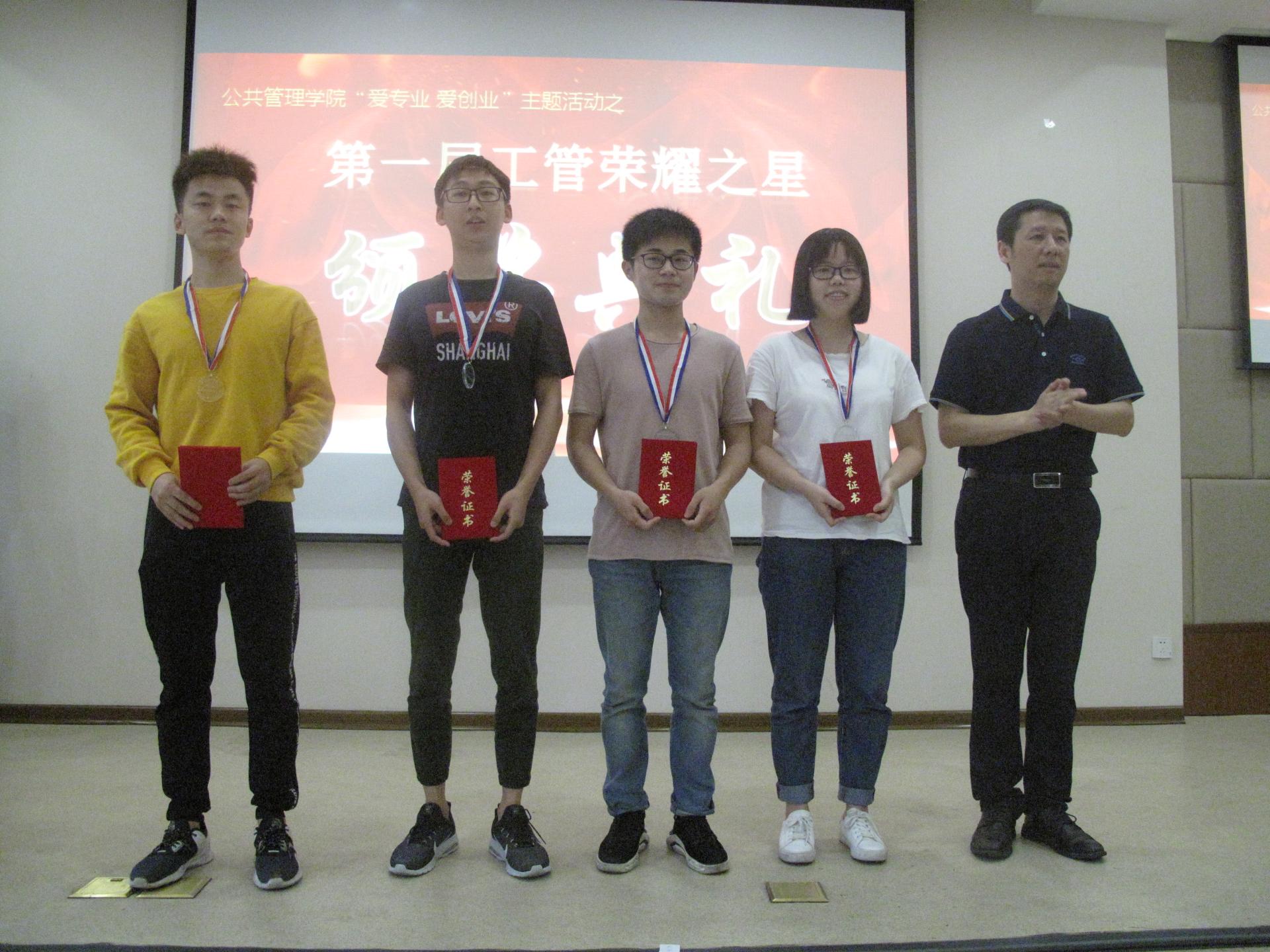现场为获得国际国家级、省级、校级、院级竞赛奖项的团队和个人、2014级出国进修和考研深造的同学颁发奖牌和荣誉证书,对他们在备考、申请过程中永不放弃、坚持梦想的精神予以嘉奖。