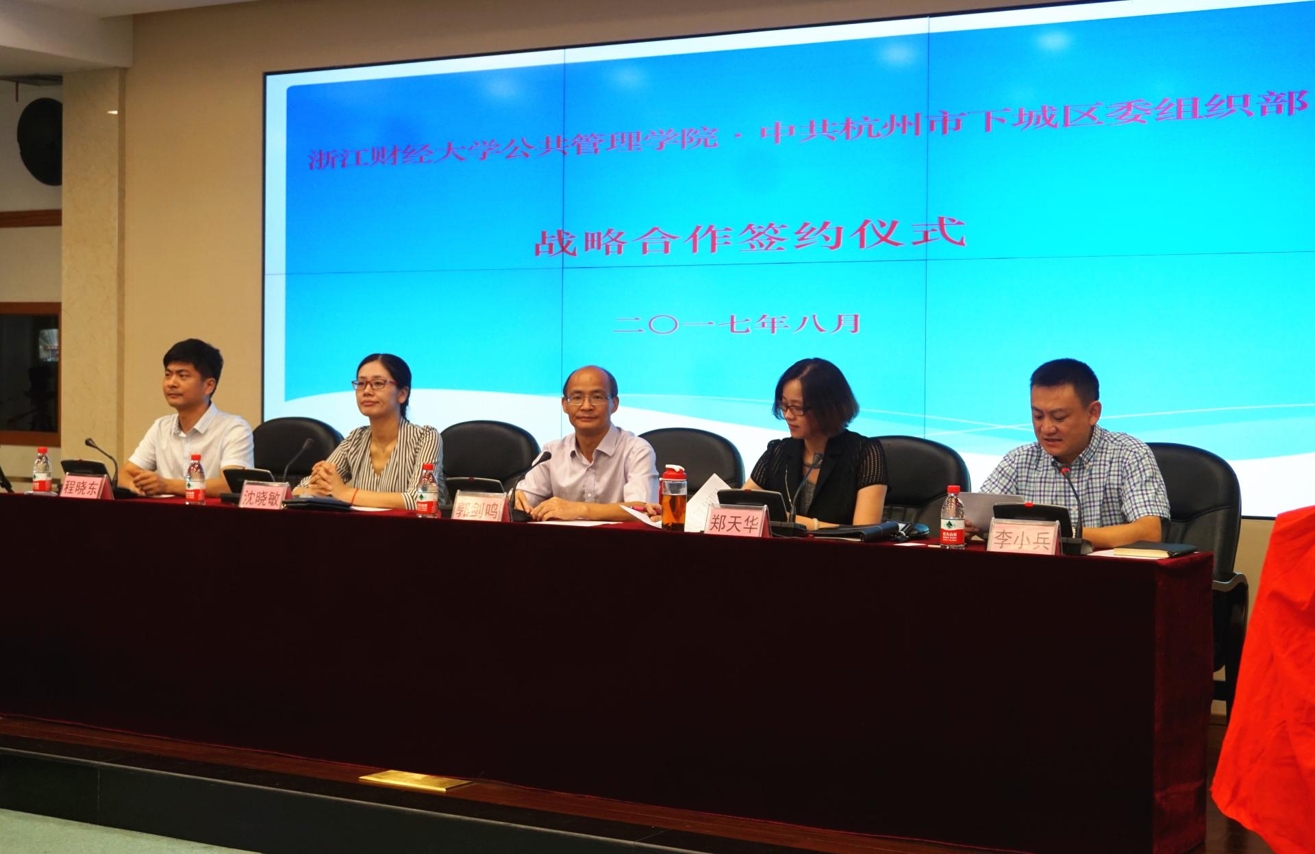8月15日,学院与中共下城区委组织部战略合作协议签署仪式在下城区行政中心举行。下城区委组织部副部长、区委人才办主任郑天华,区委人才办副主任李小兵,院长郭剑鸣,院党委书记沈晓敏,院党委副书记程晓东,区政府办、区老干部局、区发改局、区经旅局、区人社局、区卫计局、区妇联、天水街道、武林街道、朝晖街道等单位有关负责人及CBA在线直播