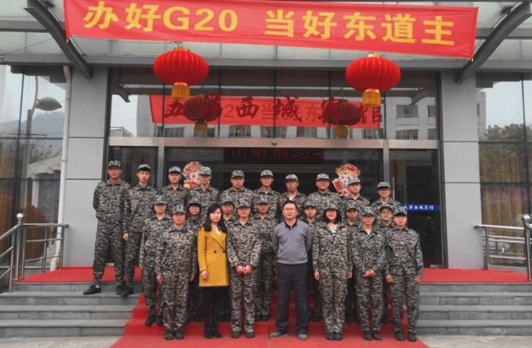 24名大一学生参加为期一个月的封闭训练。培训结束,这支专业而朝气蓬勃的实习实训队伍将会在西湖边为中外嘉宾服务,保障西湖景区的秩序,维护西湖景区的形象,把最美的西湖名片献给G20。