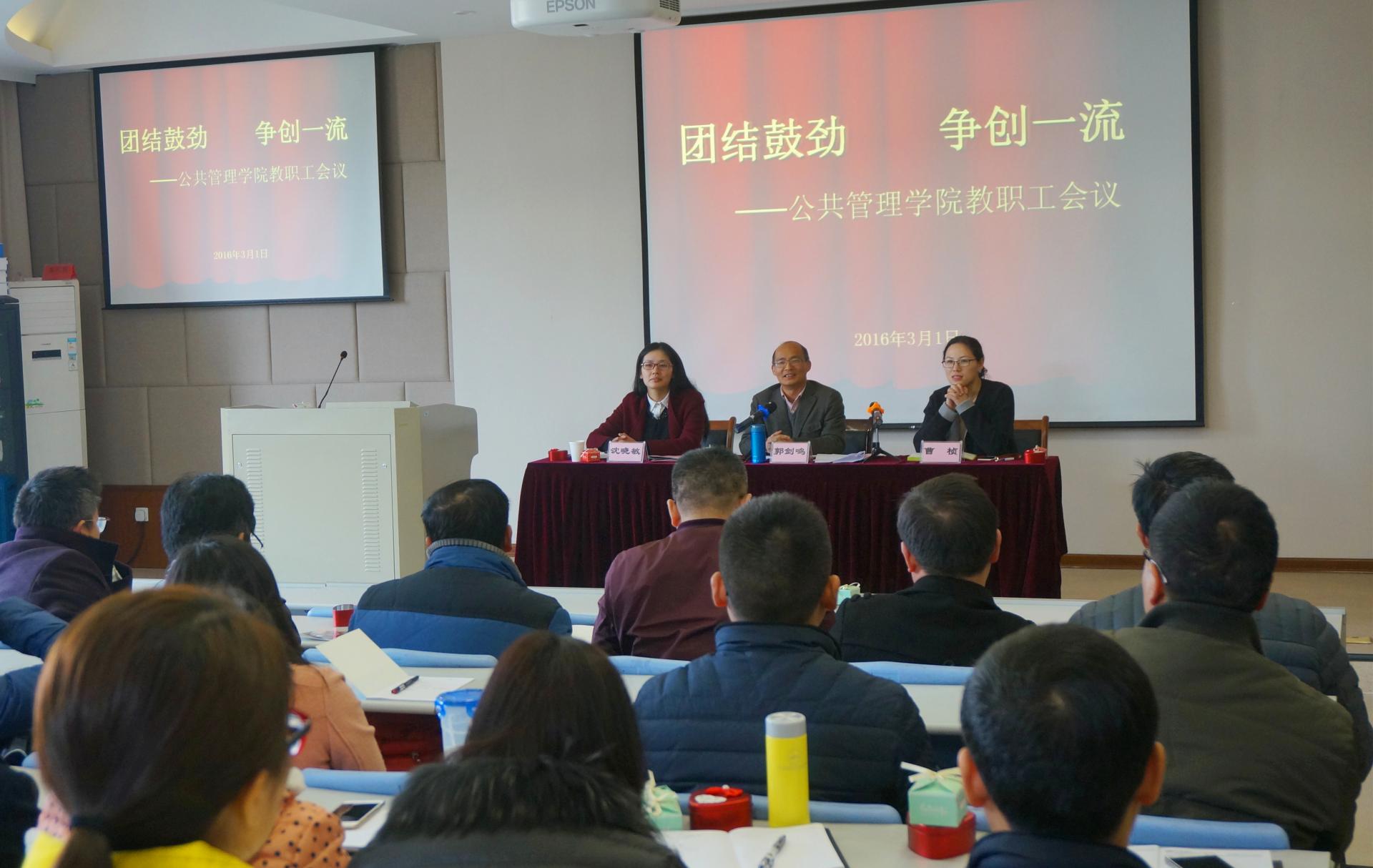3月1日下午,CBA在线直播 召开第一次全体教职工会议,院长郭剑鸣、院党委书记沈晓敏出席本次会议,全体教职工参加。会议由沈晓敏书记主持。