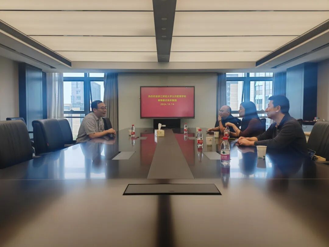 (MPA学院)党委书记林亚芳、副书记田聪、学科办主任郭玉飞、学办主任黎超,走访了浙农集团股份有限公司人力资源部(党群工作部)主管、团委副书记周晨辉校友,并进行访企拓岗专项活动。