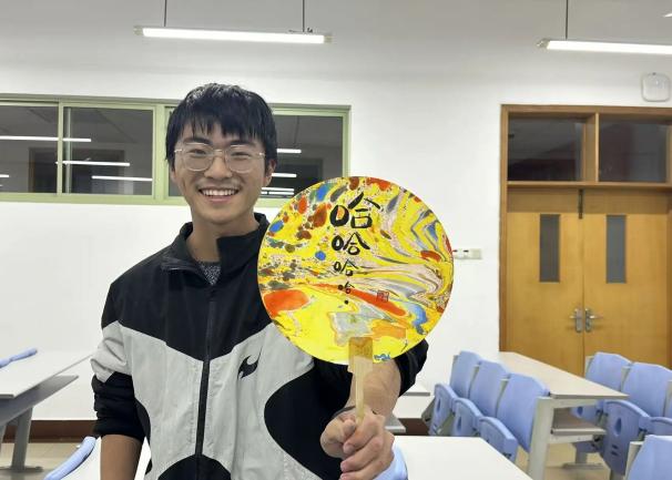学生会成员为同学们准备了空白扇子、颜料、画笔等工具,在进行制作方法及注意事项的简单讲解之后,同学们开始充分发挥自己的创意进行制作。不纠结技法是否娴熟,也不执着成品是否完美,握住木扇,让漆料在指尖慢慢铺展,绘制出独一无二的漆扇。在绘制过程中,同学们相互交流、分享心得,也增进了彼此的了解。