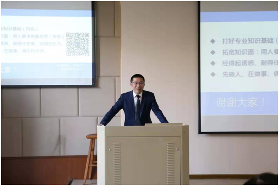 随后,我们有幸邀请到的上海第一测量师事务所总工程师王毅先生和同学们分享了工程管理专业及房地产方面的相关经验。他为我们详细地介绍了房地产行业发展现实、发展方向及需求,也鼓励大家在拓宽知识面的硬性要求下学习处世之道,做内外兼修的复合型人才。最后,王鸿迪老师代表部分获奖同学向大家展示了获奖BIM作品从初建到成型的全过程,直观的增进了同学们对工程管理专业的了解,增加了学习热情。