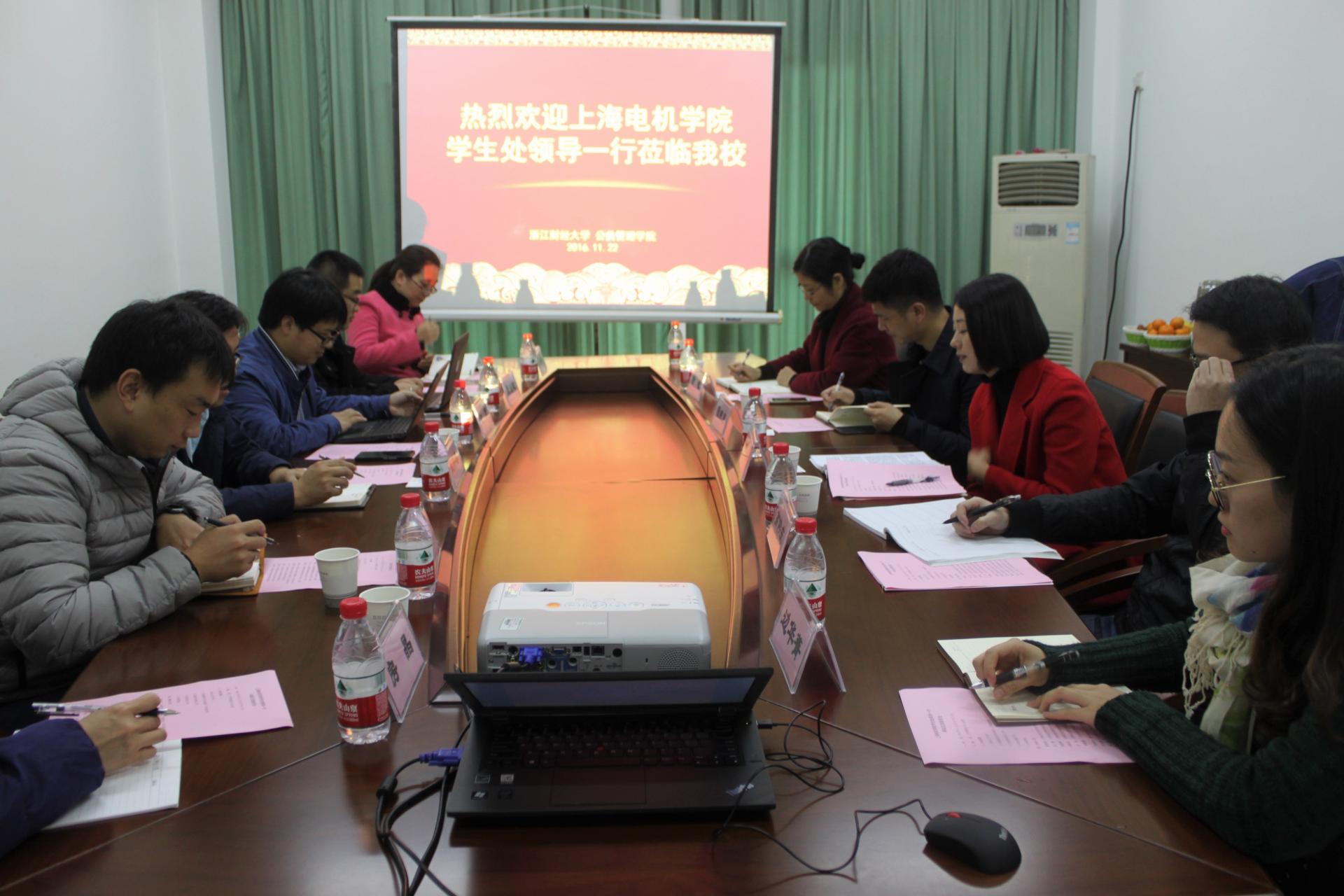 校党委学工部副部长、学生处副处长黄金娟向客人们简要介绍了我校学生规模等基本情况和学生处基本情况,并着重就我校辅导员队伍建设、学风建设等分享了经验和体会。学生处干部高伟庆介绍了我校近年来本科生就业情况,以及开展就业工作相关情况。上海电机学院党委学工部副部长、学生处副处长姚伟春等领导分享了本校相关工作情况,并对我校公寓辅导员管理、“三无两高”课堂建设、“三不两勤”寝室建设等表示浓厚兴趣,双方围绕相关话题等进行了热烈的交流和探讨。