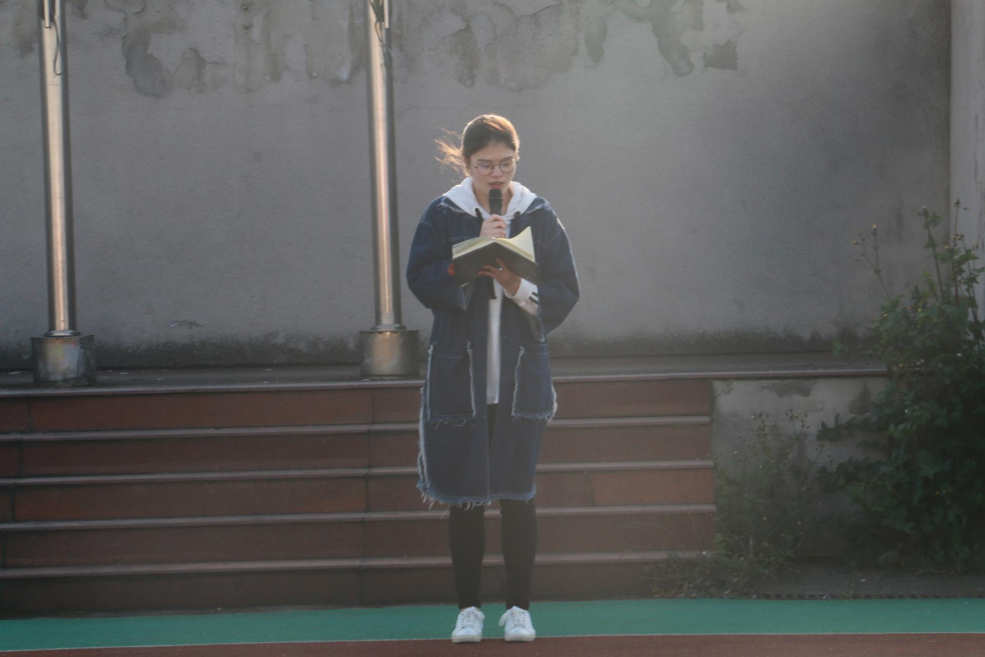 随后由院学生会组织部部长张未致国旗下讲话。她认为“初心”在我们大学生活中有着巨大的作用,为我们明确目标,指明正确的方向。而作为一名共青团员,我们应向全心全意为人民服务的党组织靠拢,努力提升自我素质和修养,跟上时代的脚步,为中华民族的伟大复兴奉献出一份自己的力量。