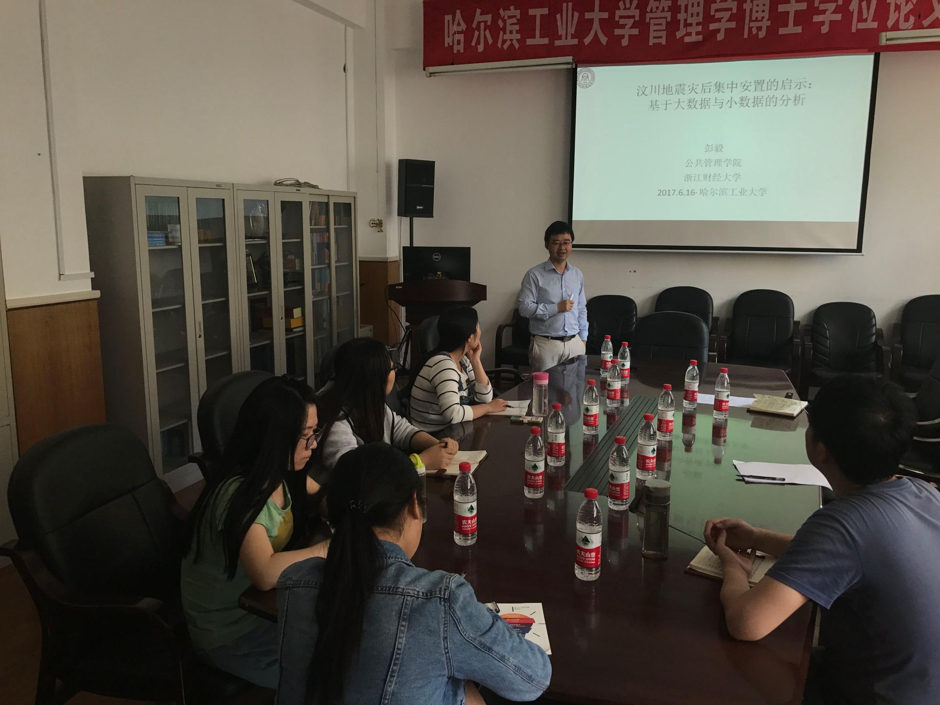 工程管理系老师彭毅,受邀在哈尔滨工业大学营造与房地产系访问,并做了题为“汶川地震灾后集中安置的启示:基于大数据与小数据的分析”的学术报告,分享利用大数据分析了集中安置中新闻报道的启示,以及利用小数据分析集中安置中村民的风险认知、满意度及村庄的可持续性。报告最后就大数据与小数据分析的方法应用,进行了反思与讨论,并与师生们进行了深入地交流。