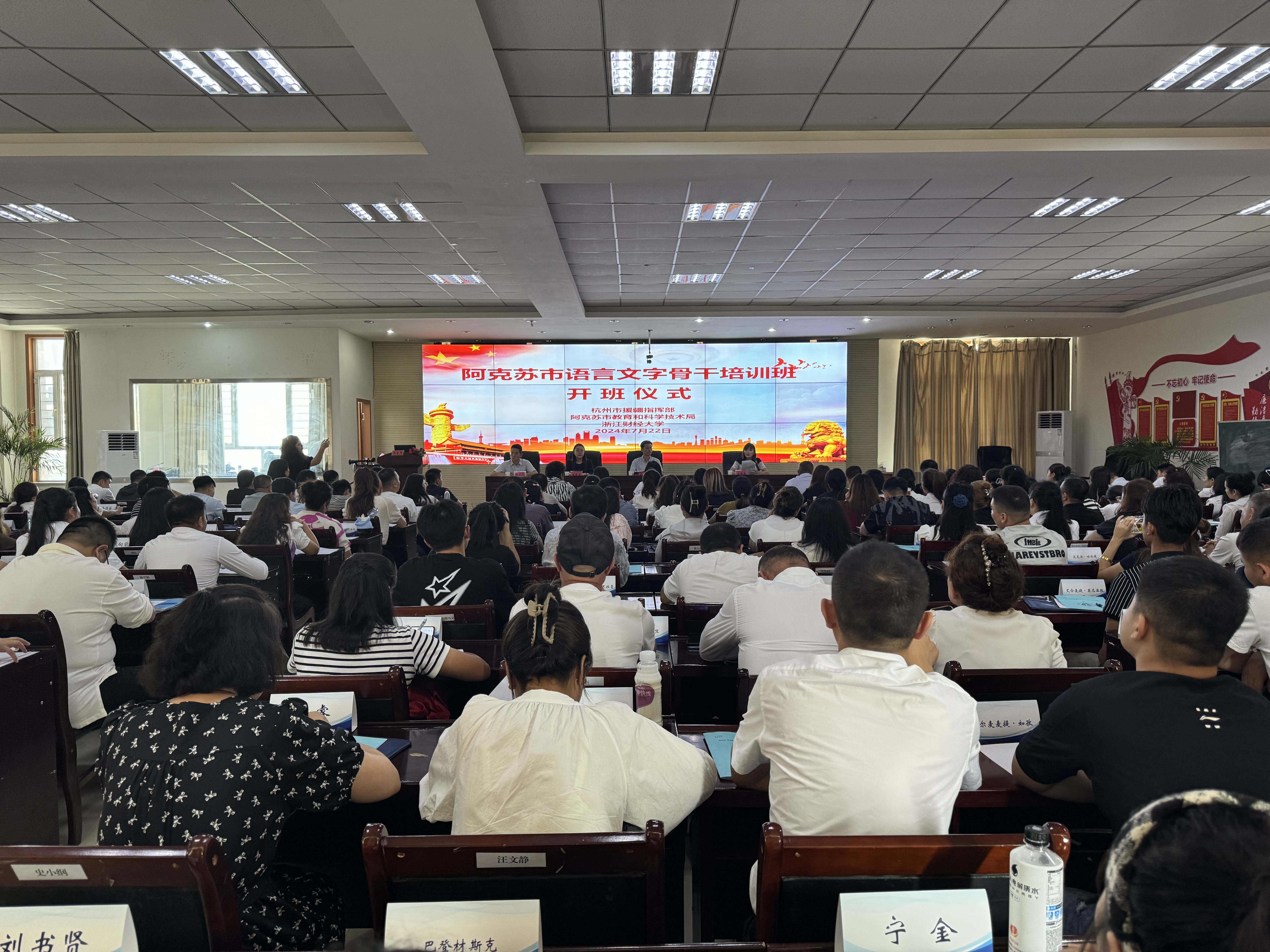 党委委员、副教授王笑言,阿克苏市委教育党工委委员、副局长濮龙龙,阿克苏市委教育工委委员、教科局党组成员、专职督学王颖瑜,以及阿克苏各片区、乡(镇)、街道语言文字分管同志及骨干共计200余人参加本次开班仪式。