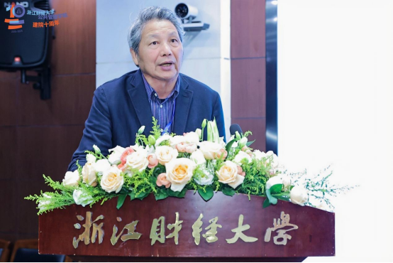 国务院学位委员会公共管理学科评议组成员、教育部公共管理类教学指导委员会副主任委员、南京农业大学公共管理学院欧名豪教授在致辞中对学院未来发展提出三点期望:强化“公管+财经”“公管×数智”的融合,培育新兴专业方向;深化教学改革,打造具有浙江辨识度的“金课”与教学团队;拓展实践育人,依托浙江“重要窗口”的区位优势,让学生在真实治理场景中淬炼能力。他表示,教指委将持续支持学院发展,期望公共管理学院以建院十周年为新的起点,加快建设成为国内有影响力的公共管理人才培养高地。