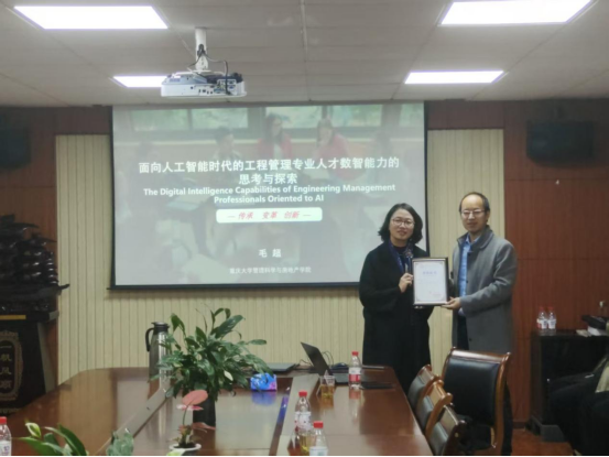 毛超教授作题为《面向人工智能时代的工程管理类专业人才数智能力培养探索》的报告。毛超教授详细阐述了重庆大学管理科学与房地产学院在培养目标、课程设置、讲授方式、评价体系、资源建设和机制保障等方面的人才数智能力培养改革实践和其获得国家级、重庆市和重庆大学教学成果奖的申报经验。她指出,AI对专业的影响并非“撕碎重构”,而是引发“进化”——不应停留在简单的智能问答,而应引导学生深入理解底层逻辑、构建个人专属的学习“智能体”,最终实现每个学生的个性化发展与价值体现。在AI时代,教师的角色需要从传统的知识传授者转变为引导学生探索的赋能者和协作者。