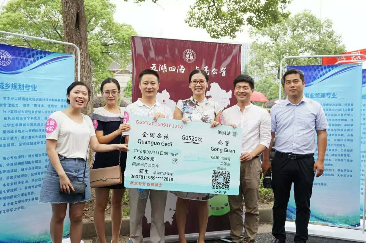 8时许,2016级新生接踵而来。在志愿者的引领下,新生和家属来到由新生各班班导为主要力量的报到处,注册登记后,新生们领着大礼包来到横幅前拍照留念,一张类似火车票的牌子,由“全国各地”驶向“公管”的公管号列车寓意十足。背景是一幅全国、全省地图,每一名报道的新生都会贴上一颗红色五角星,新生在全国各地的分布情况和报道情况尽收眼底,更加凸显出CBA在线直播