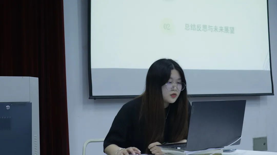 随后,由各部门及协会负责人上台总结本学期的工作,从学期工作展开,指出本学期工作的内容、进步以及不足,并讲解了对未来部门及协会发展的总体规划,也表达了对本部门、协会干事的鼓励和肯定。