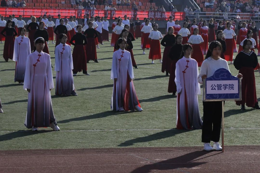 白衣黑裤,公管学院运动员方阵以饱满的精神面貌迎接着运动会的到来。