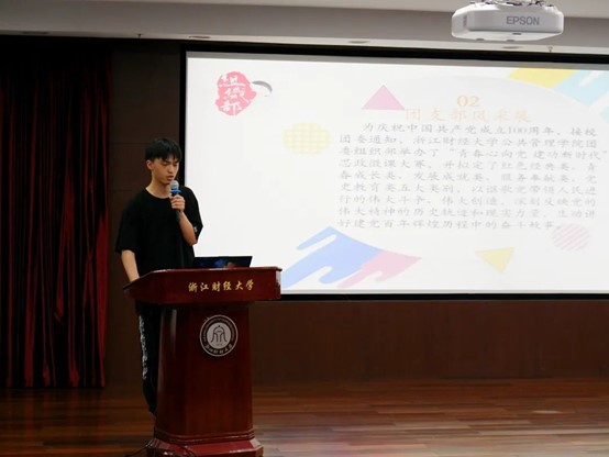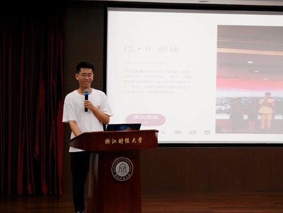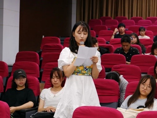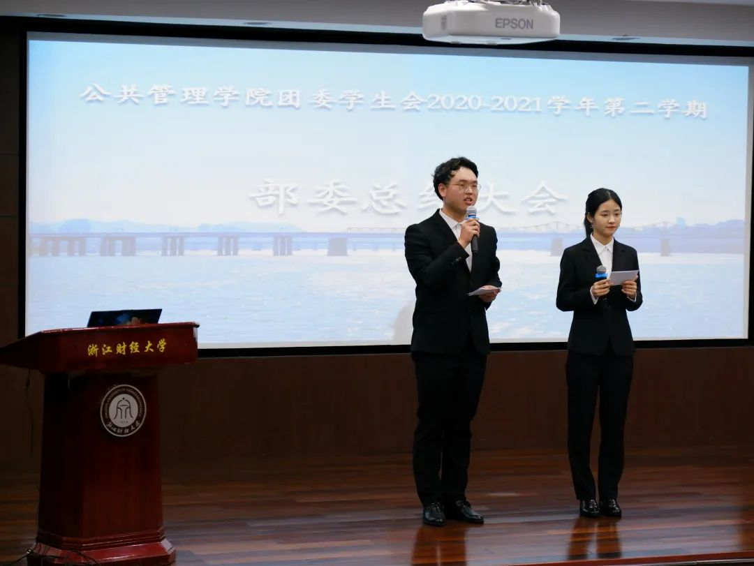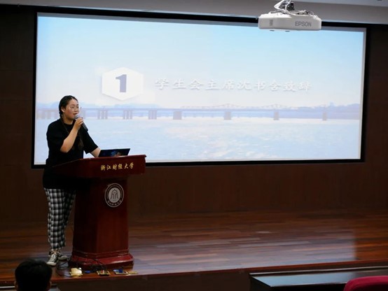 首先,学生会主席沈书含进行致辞。她对过去一学期里各部门做出的努力给予肯定,同时指出了团学社目前存在的不足。最后她坚定地传达公管团学社一定会越来越好的信念。