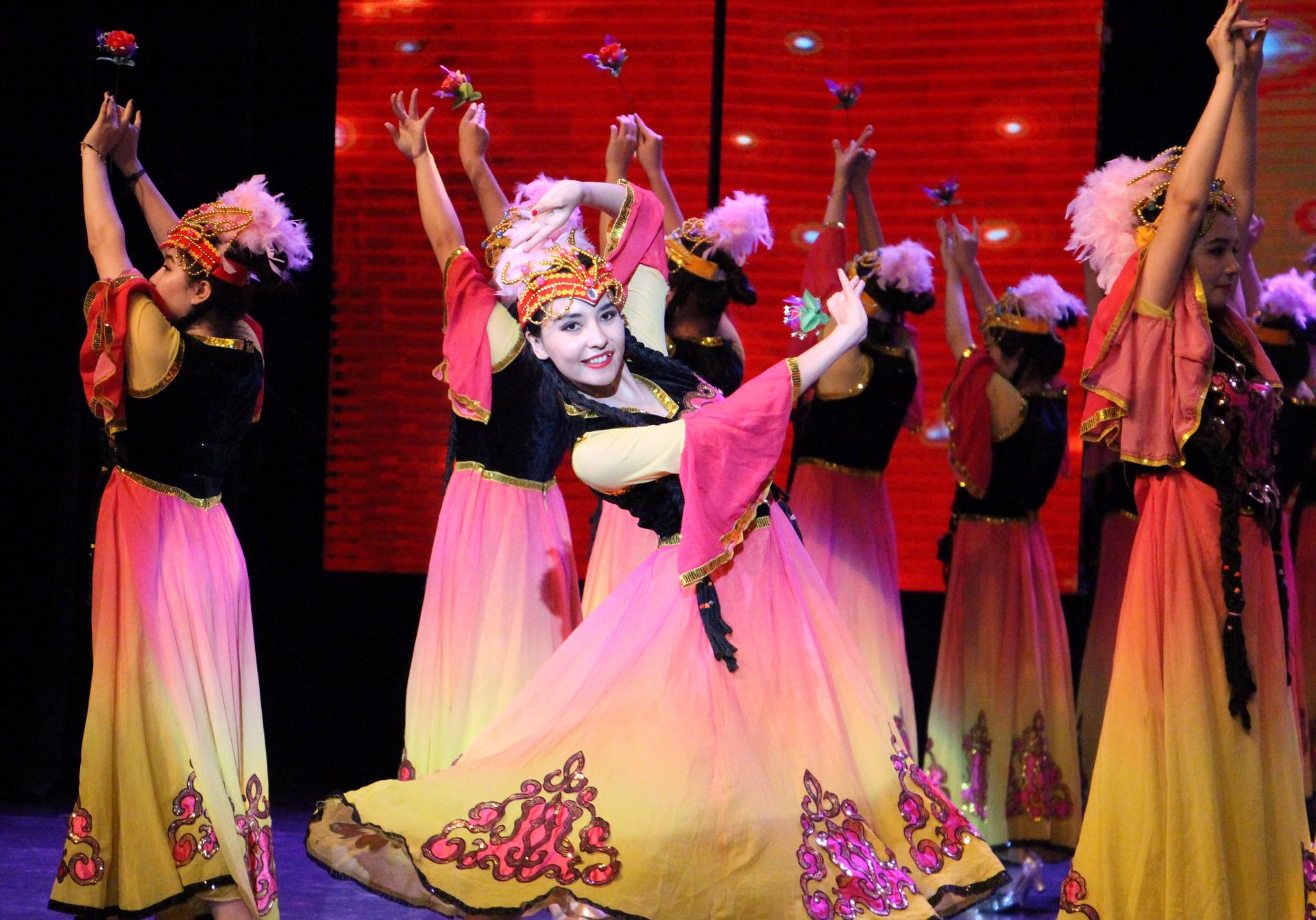 的舞蹈《亚力亚》在学生们精彩表演下,在灯光与造型的配合下,赢得了全场阵阵掌声。